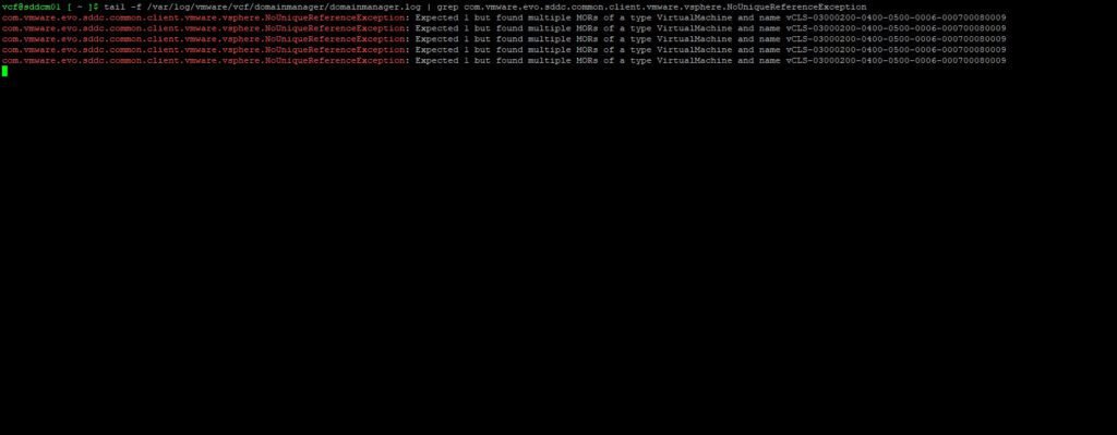 com.vmware.evo.sddc.common.client.vmware.vsphere.NoUniqueReferenceException: Expected 1 but found multiple MORs of a type VirtualMachine and name vCLS-03000200-0400-0500-0006-000700080009